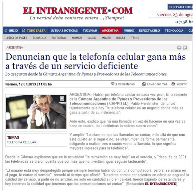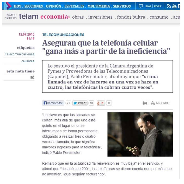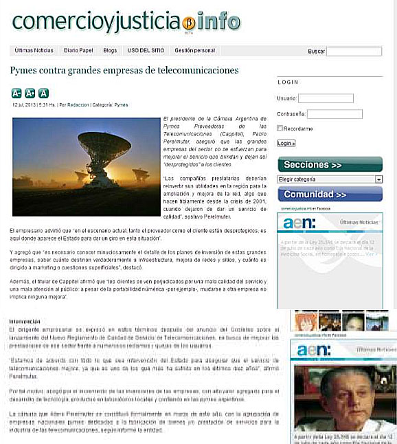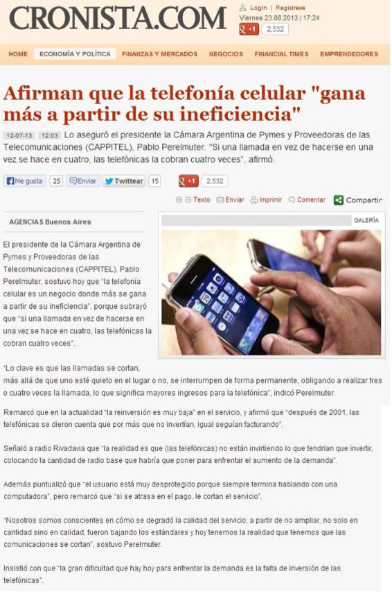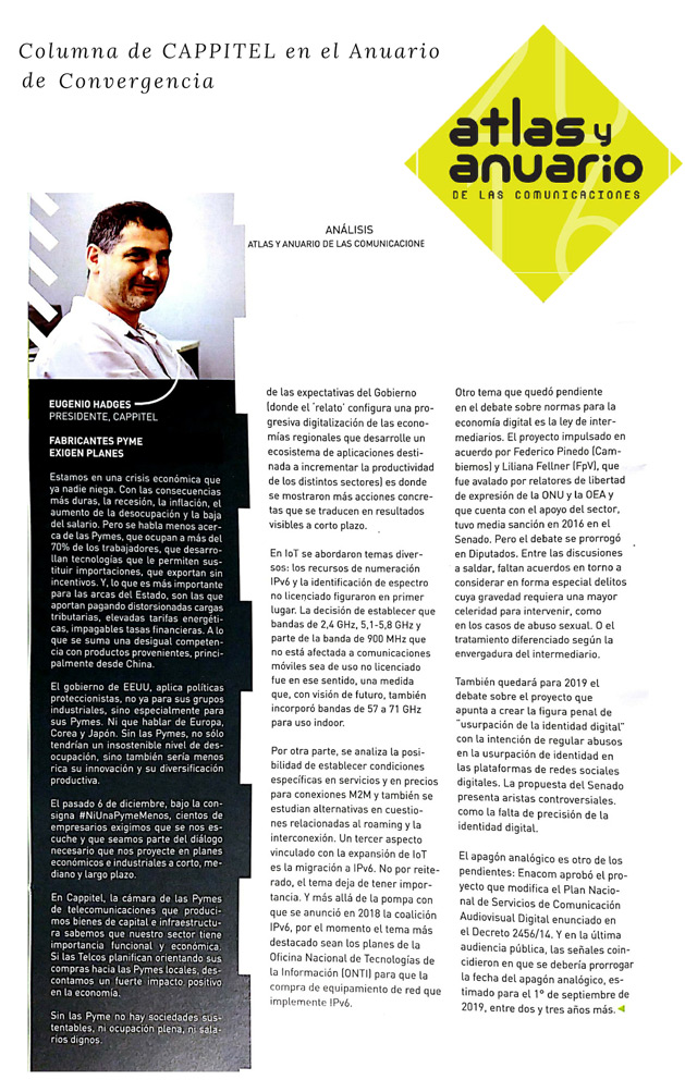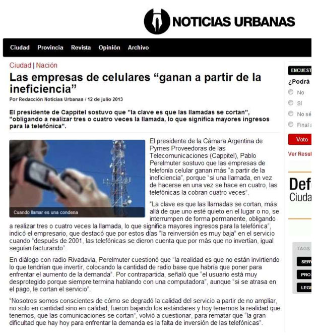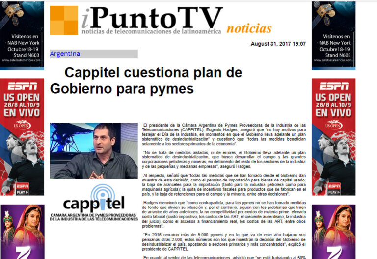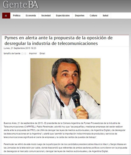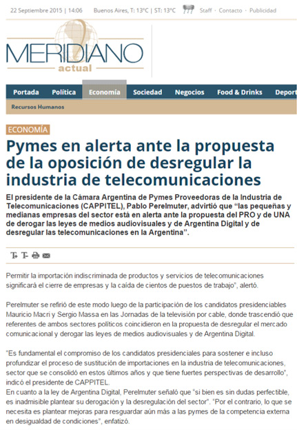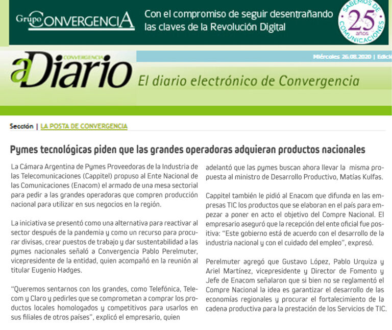 Así lo afirmó Pablo Perelmuter, presidente de la Cámara Argentina de Pymes Proveedoras de la Industria de las Telecomunicaciones (Cappitel), en una reunión con representantes del Gobierno Nacional, donde presentaron las principales propuestas para promover el crecimiento del sector.