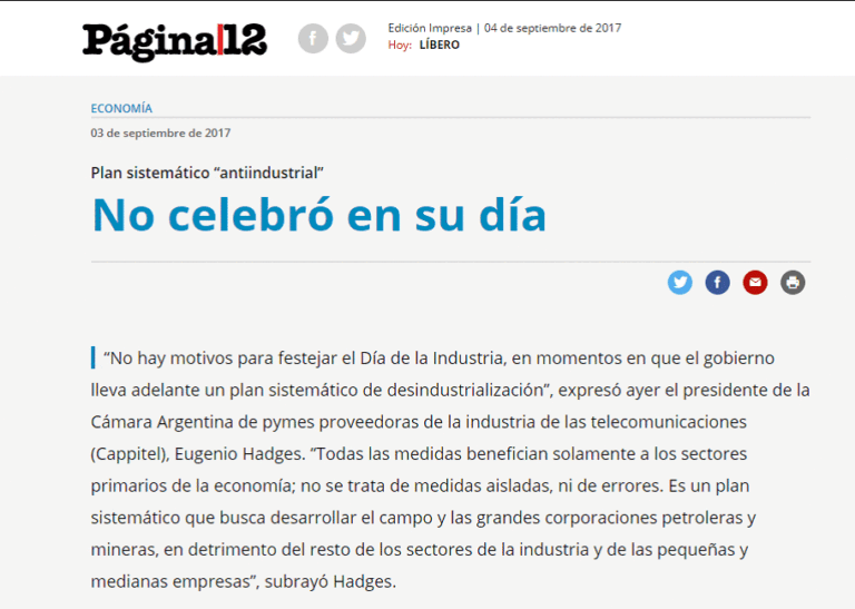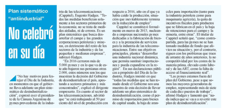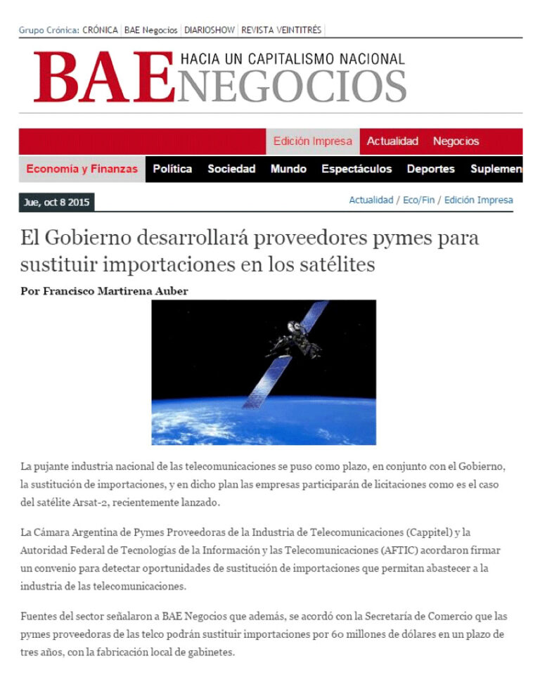 Desde 2013, Cappitel ha construido un espacio institucional que integra Pymes dedicadas a la fabricación de bienes y/o prestación de servicios para la industria de las Telecomunicaciones, Electrónica y Energía.
