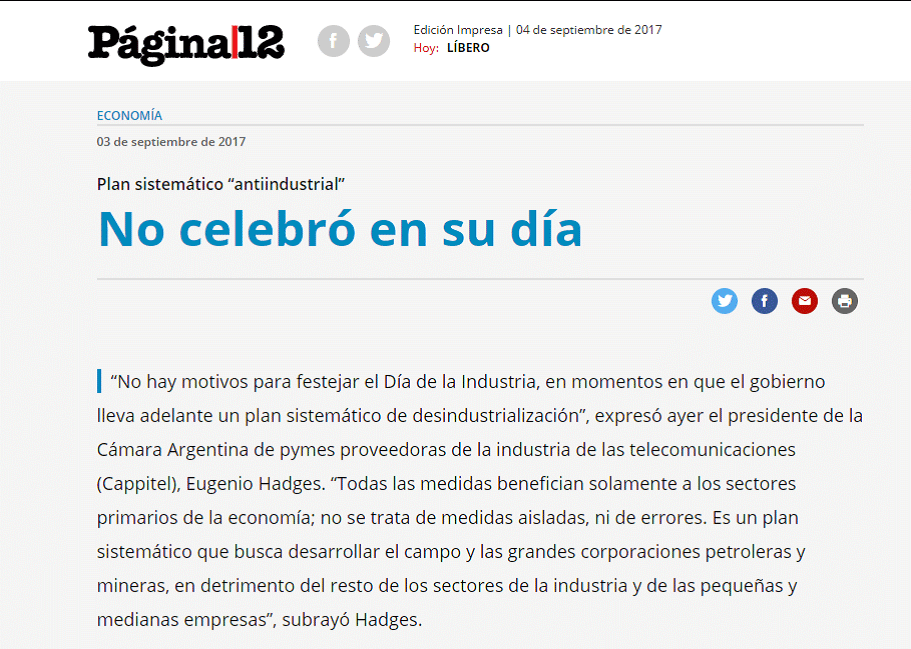 Coincidimos también en que hoy la mayor limitación de crecimiento son los recursos humanos y para ello es fundamental un Estado comprometido con la educación para que la industria nacional sea cada vez más competitiva y soberana.