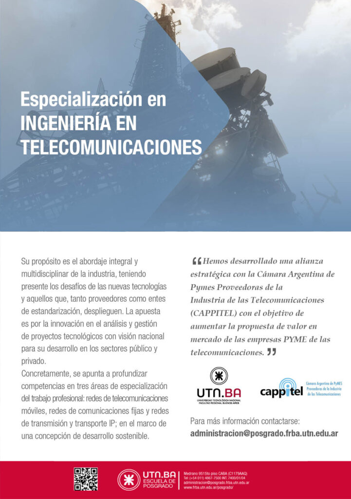 La Cámara Argentina de Pymes Proveedoras de la Industria de las Telecomunicaciones (Cappitel) selló un acuerdo con la UTN.BA para la carrera de Especialización en Ingeniería en Telecomunicaciones, que permitirá a los socios obtener un 25% de descuento en las cuotas.